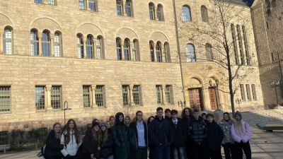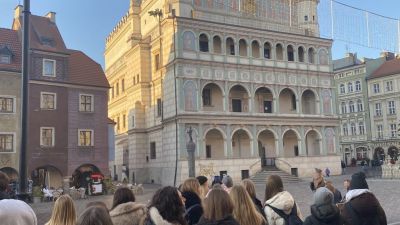 Dnia 18 grudnia 2025 r. uczniowie klasy 1 D i dwie maturzystki z klasy 4 D wzięli udział w wycieczce do Poznania, której celem było zapoznanie młodzieży z zabytkami miasta Poznania oraz aktywny udział młodzieży w warsztatach kontekstowych pt. "Sposób na balet". Wisienką na torcie było przedstawienie baletowe pt. "Królowa Śniegu", którego tancerze otrzymali od publiczności owacje na stojąco. Pogoda dopisała, a Jarmark Bożonarodzeniowy dodał tej wycieczce niezapomnianego uroku.