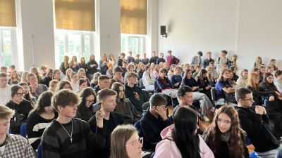 Hanna Tutka z kl. 3d oraz Szymon Siekiera z kl.3b odpowiadali na pytania przygotowane przez organizatorów debaty.