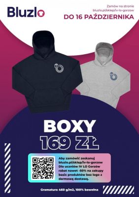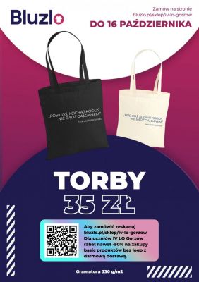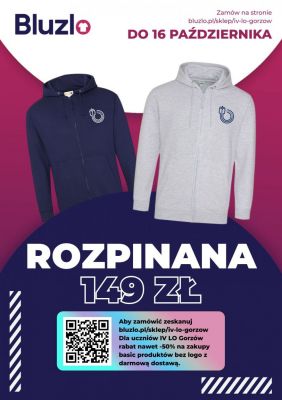 Każdy zainteresowany sam składa i opłaca zamówienie (do 16.10). Bluzy i torby przychodzą do szkoły (początek listopada).